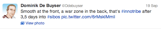 Thank you, thank you for this encouraging feedback. It is the result of a year’s preparation by the team, weekly conference calls with the production company starting four months before D-Day, many prep calls with the speakers, and loads of blood, sweat and tears behind the scenes. Innotriber Dominik tweeted oh so rightly about the warzone backstage.