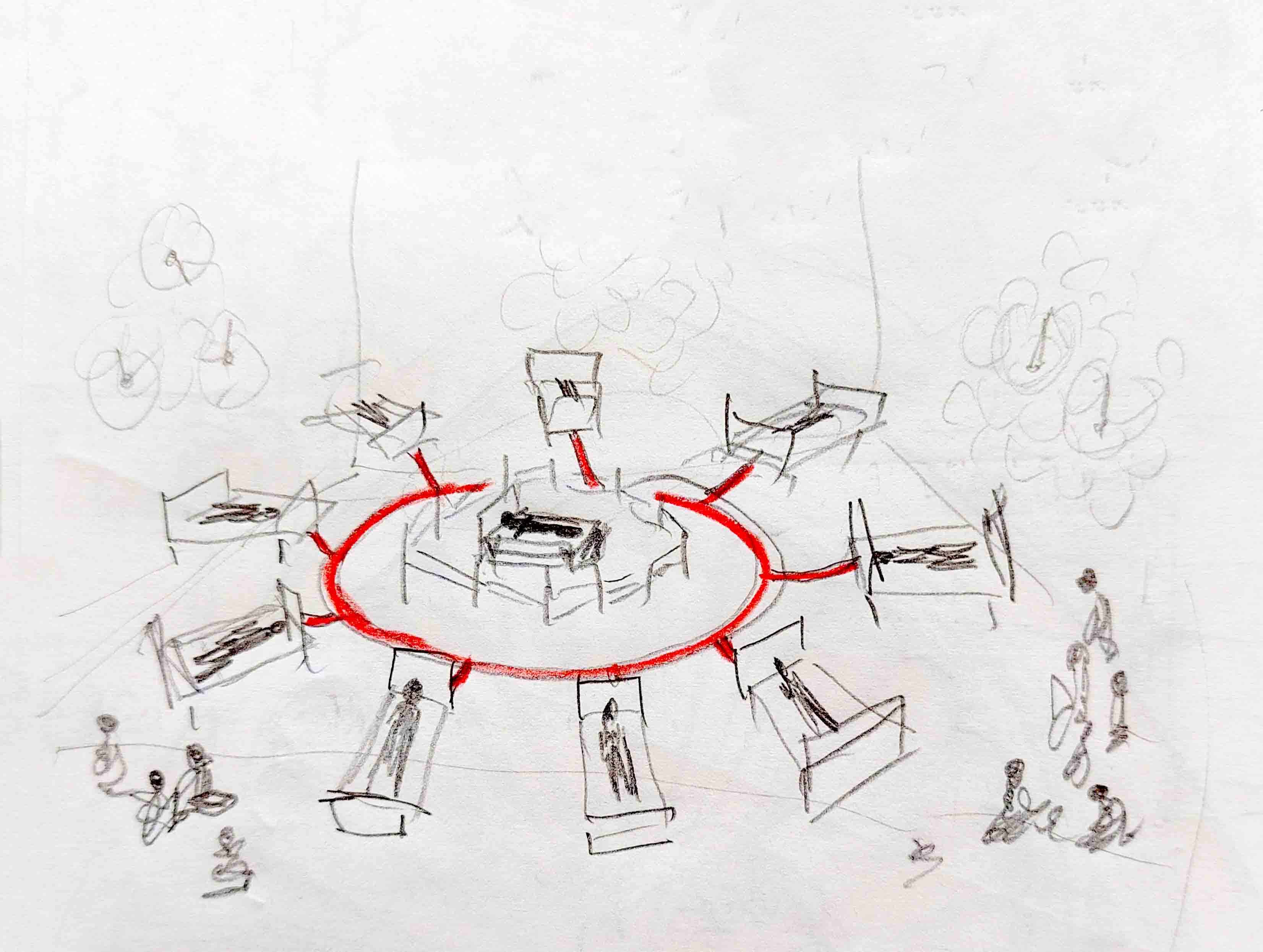 Then, as part of my end-project for the Howest course XR in Industry, we created a very early version of The Forbidden Question, which began with the story of an Eastern European waiter and the concept of central and surrounding beds. The video below is an early MVP of what we had in mind.