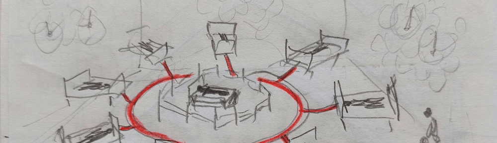 In preparation for our talk at UnitedXR, Andreea and I had many online sessions on the mood and conceptual flow of our presentation (Mural extract below). We wanted to present a coherent journey from New New Babylon to The Forbidden Question to The Third Council.