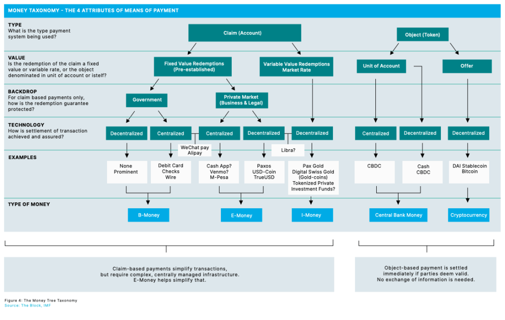The authors do a great job in explaining the difference between Claim-based (or account-based) money and Object-based (or token-based) money.